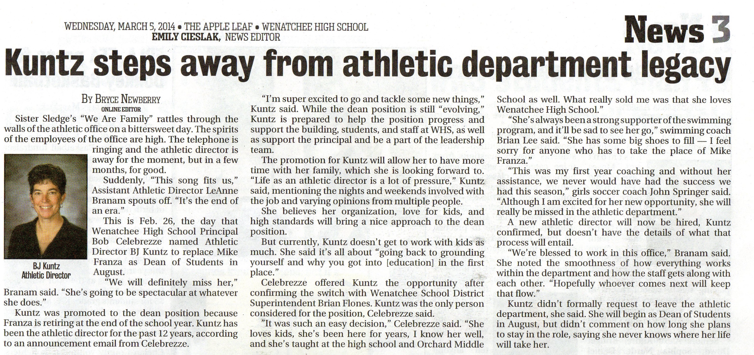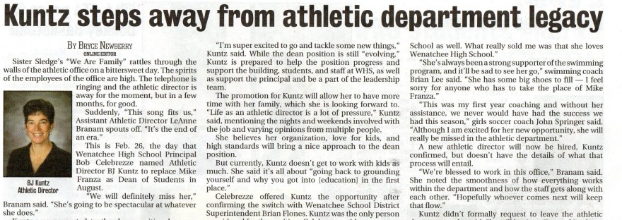 This is Feb. 26, the day that Wenatchee High School Principal Bob Celebrezze named Athletic Director BJ Kuntz to replace Mike Franza as Dean of Students in August.
