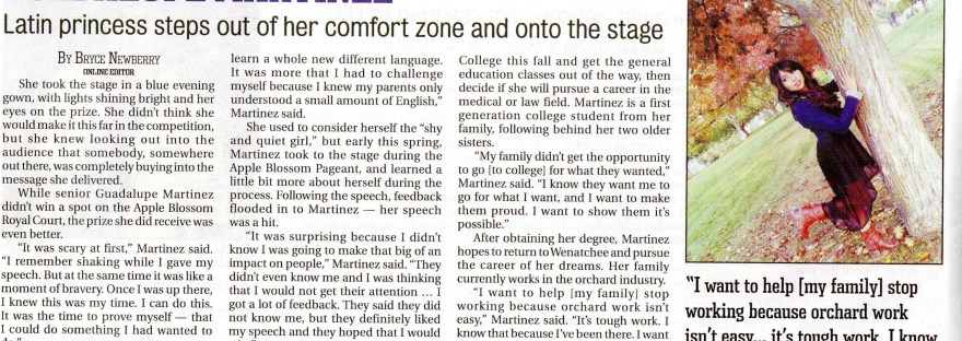 After obtaining her degree, Martinez hopes to return to Wenatchee and pursue the career of her dreams. Her family currently works in the orchard industry.